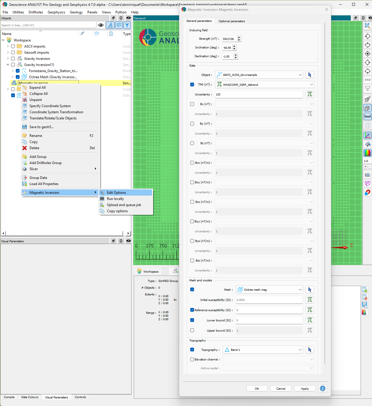 0 SIreference value for the model. This assumes that we removed all background signal from the data.Assign the newly created octree mesh object.