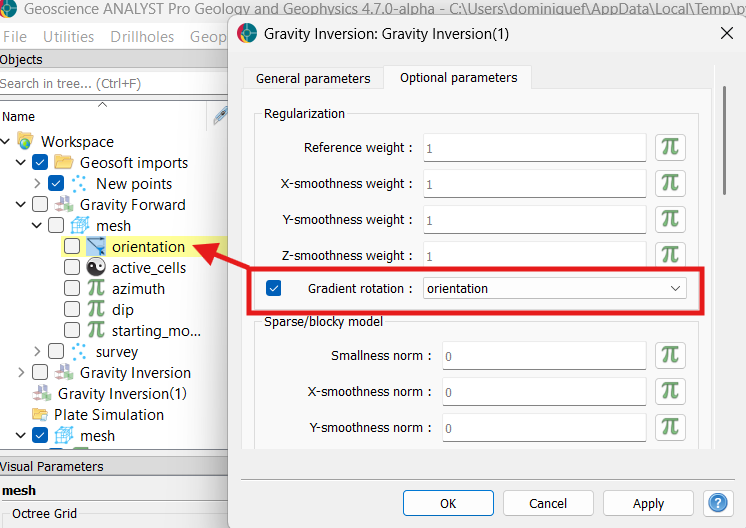Direction information must be supplied as a Data Group defined on the inversion mesh. The following group types are accepted: Dip direction & Dip, Strike & Dip or as 3D vector.