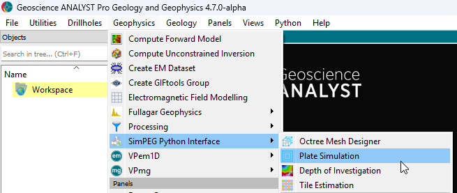 The user-interface is accessible from Geoscience ANALYST Pro Geophysics menu.